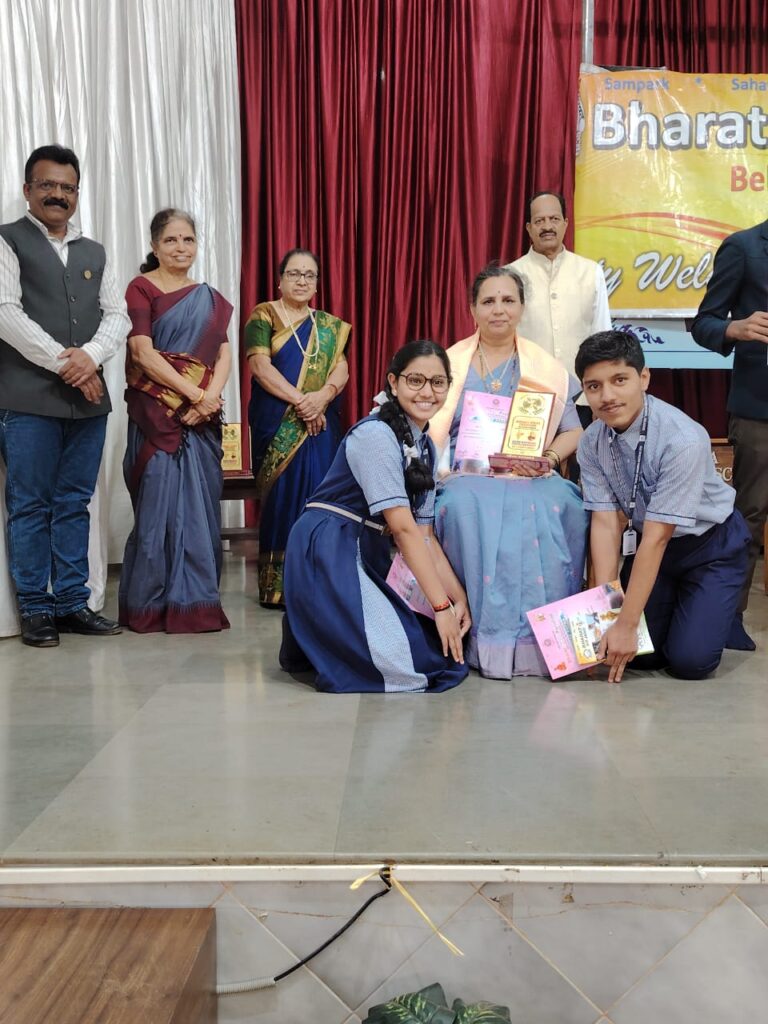 On the occasion of Teachers’ Day, Bharat Vikas Parishad felicitated Mrs. Nanda Gurlhosur with the Best Teacher Award, while Pranit Bhingurde was recognized as the Best Boy and Anvesha Shirhatti as the Best Girl from Std. X. ✨👏